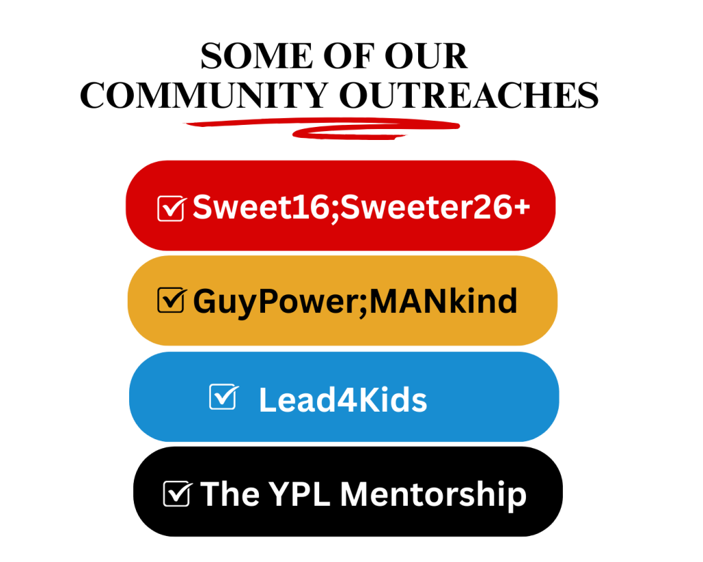 From Girls. To Boys. To Children. To Mentorship. We Build Purpose at Every Stage. Sweet16 & Sweeter26+, GuyPower & MANkind, Lead4Kids, and the YPL Mentorship Program; designed to guide young lives through real growth moments.